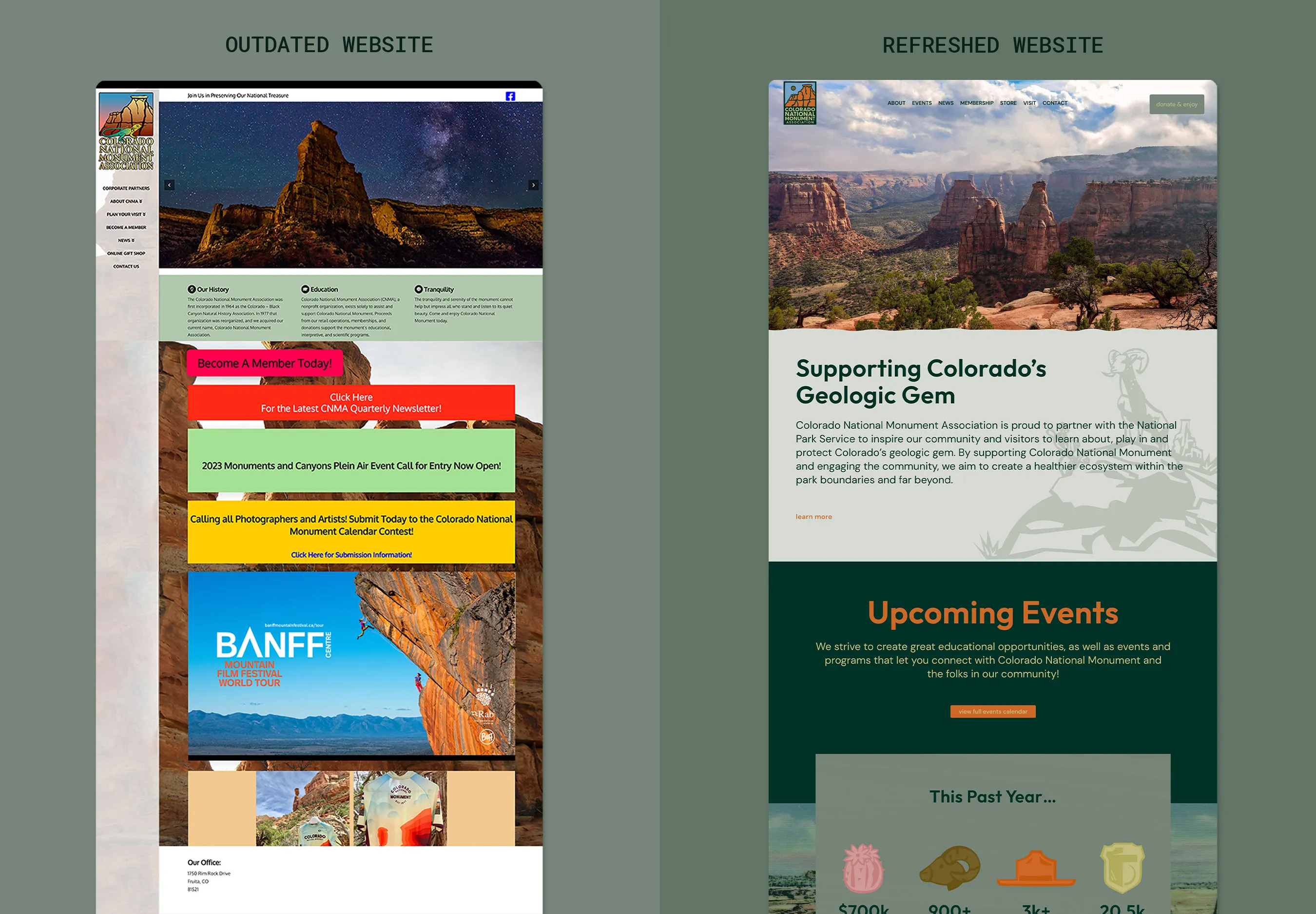 The Colorado National Monument Association (CNMA) is an outdoor-focused nonprofit based in Grand Junction, CO, committed to supporting the Colorado National Monument through a variety of initiatives. Since its establishment in 1964, CNMA has served as a vital partner to the park, though its visual identity and community presence have evolved over time.